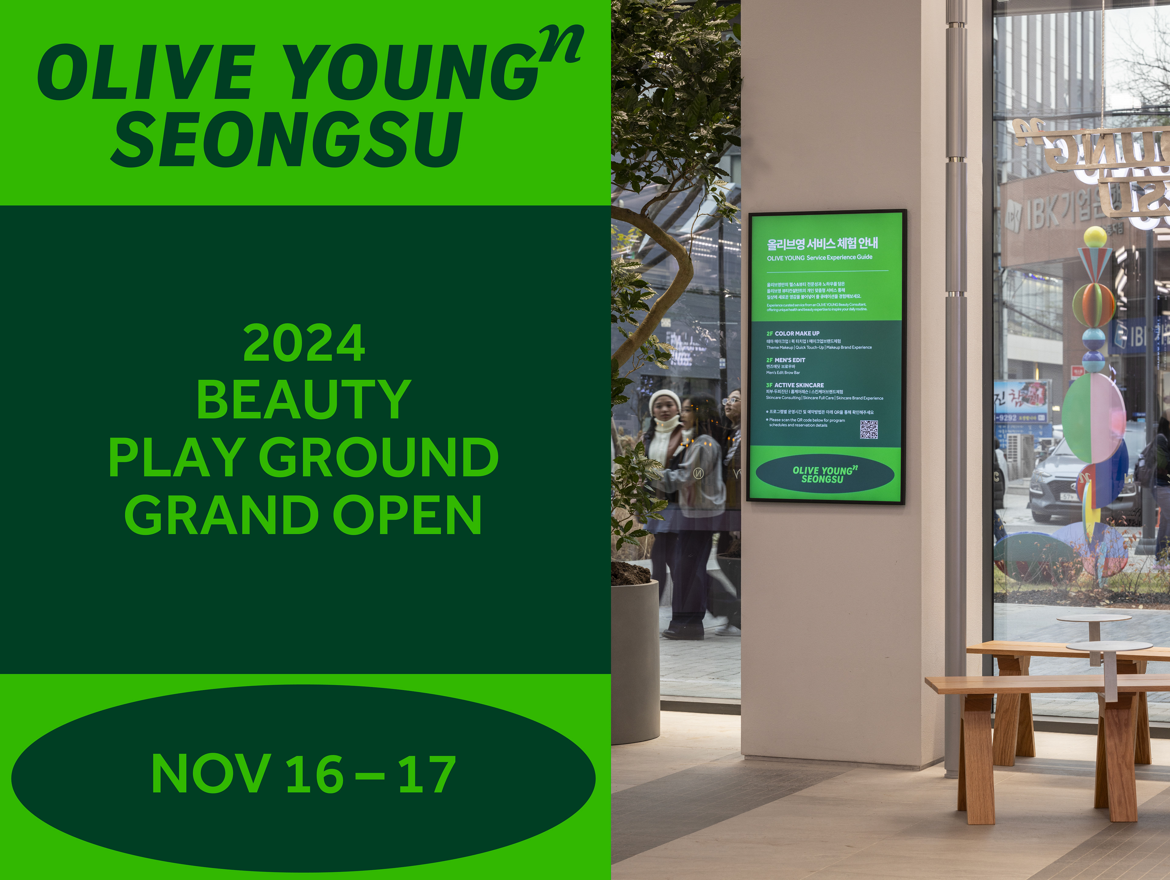 This project introduces the BI design development for Olive Young N Seongsu, Olive Young’s innovative flagship store completed in 2024. Known for attracting large crowds every day, Olive Young N Seongsu recently celebrated its first anniversary since opening.